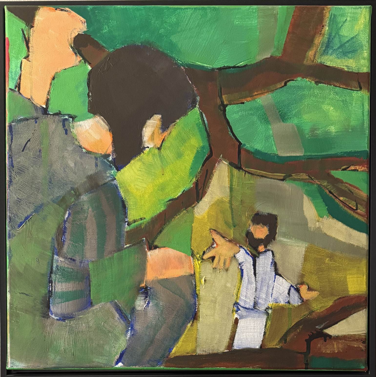 Vor grünem Hintergrund streckt Jesus dem Zöllner Zachäus die Hand entgegen (Lukasevangelium, Kapitel 19).