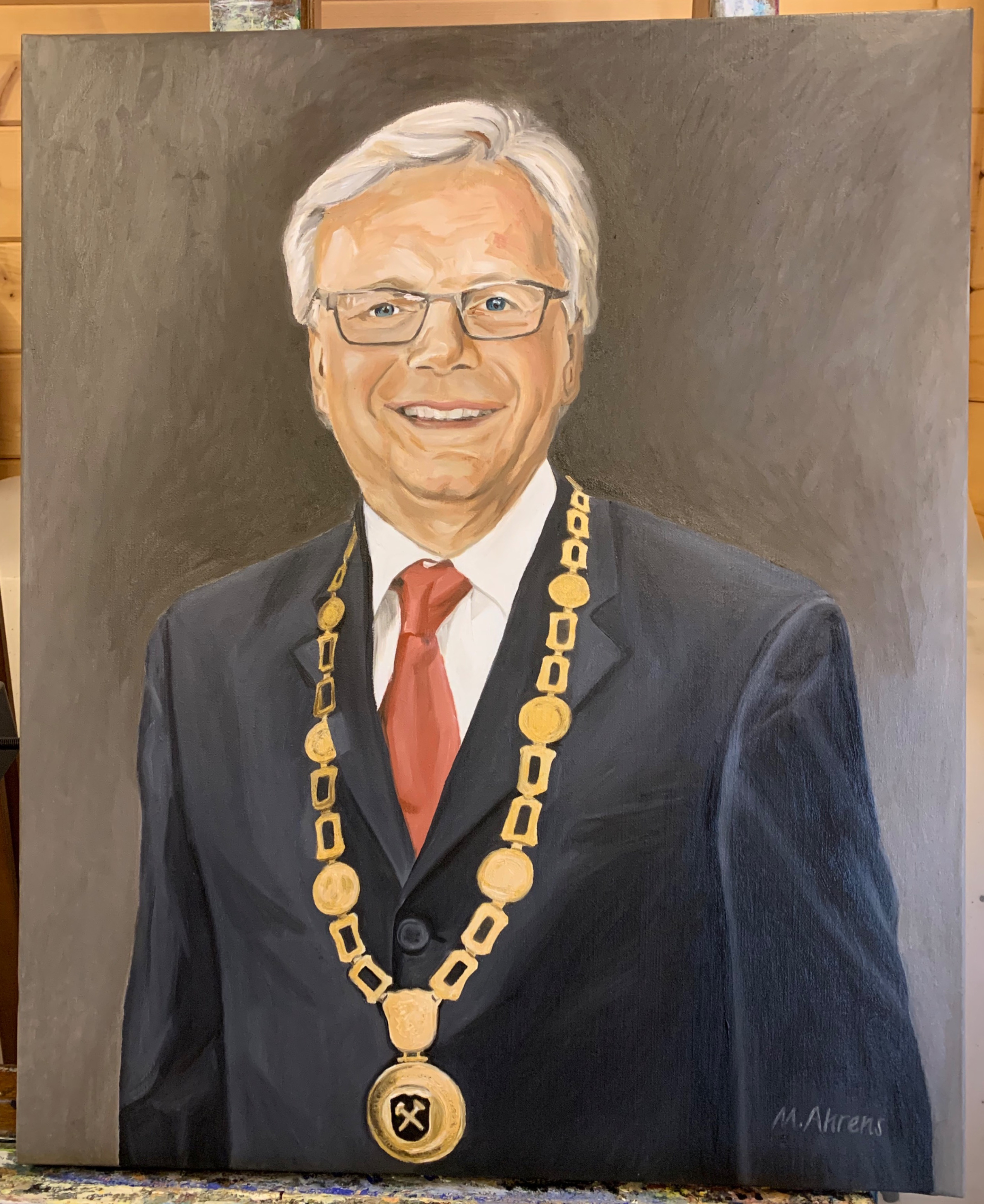 Im Sitzungssaal des Rathauses von Schwarzenbach am Wald kann sich der Besucher alle Altbürgermeister der Stadt im Porträt ansehen. Die beiden neuesten Bilder wurden von mir gemalt.