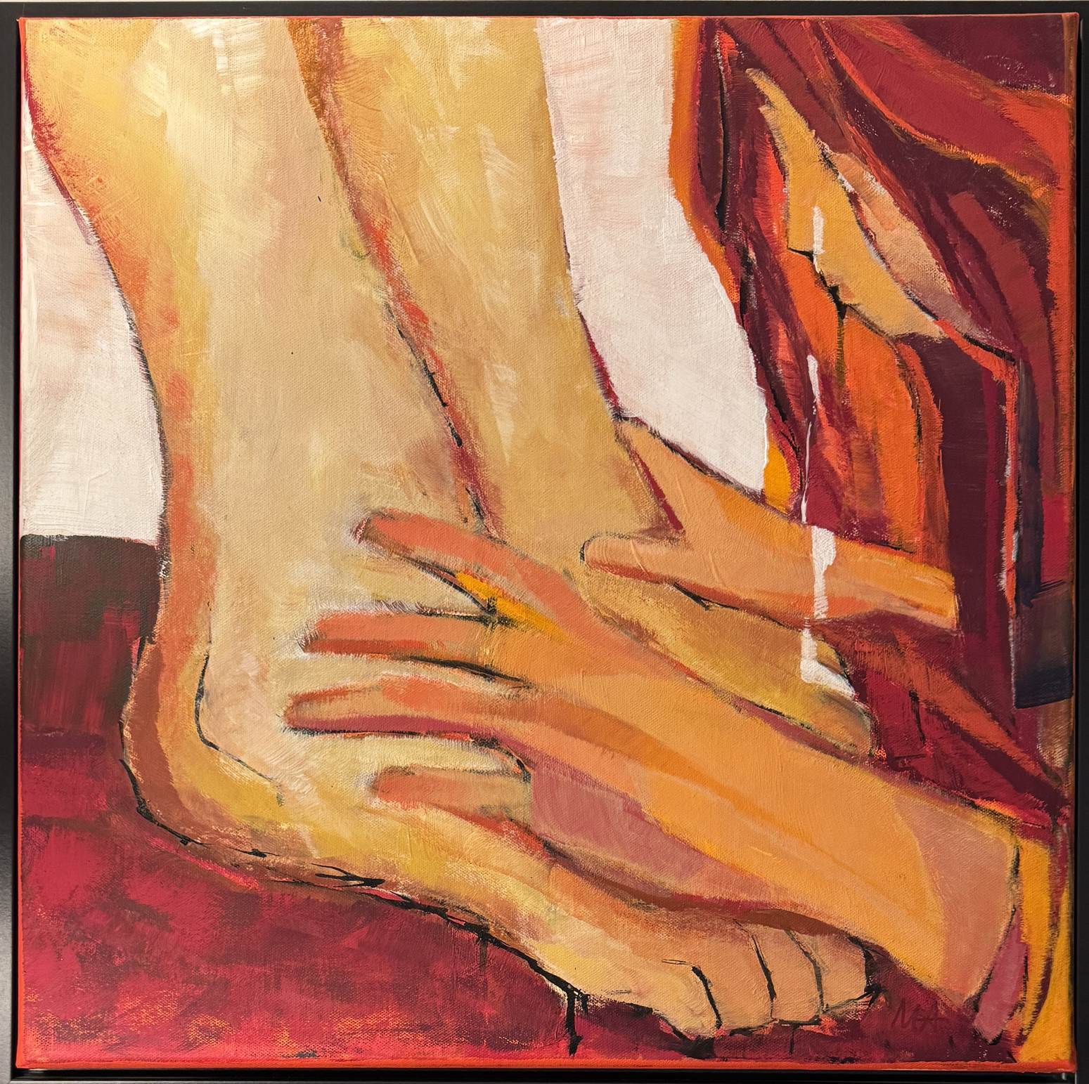 In Rot wird nachempfunden, wie die Sünderin hingebungsvoll Jesu Füße salbt (Markusevangelium, Kapitel 14).